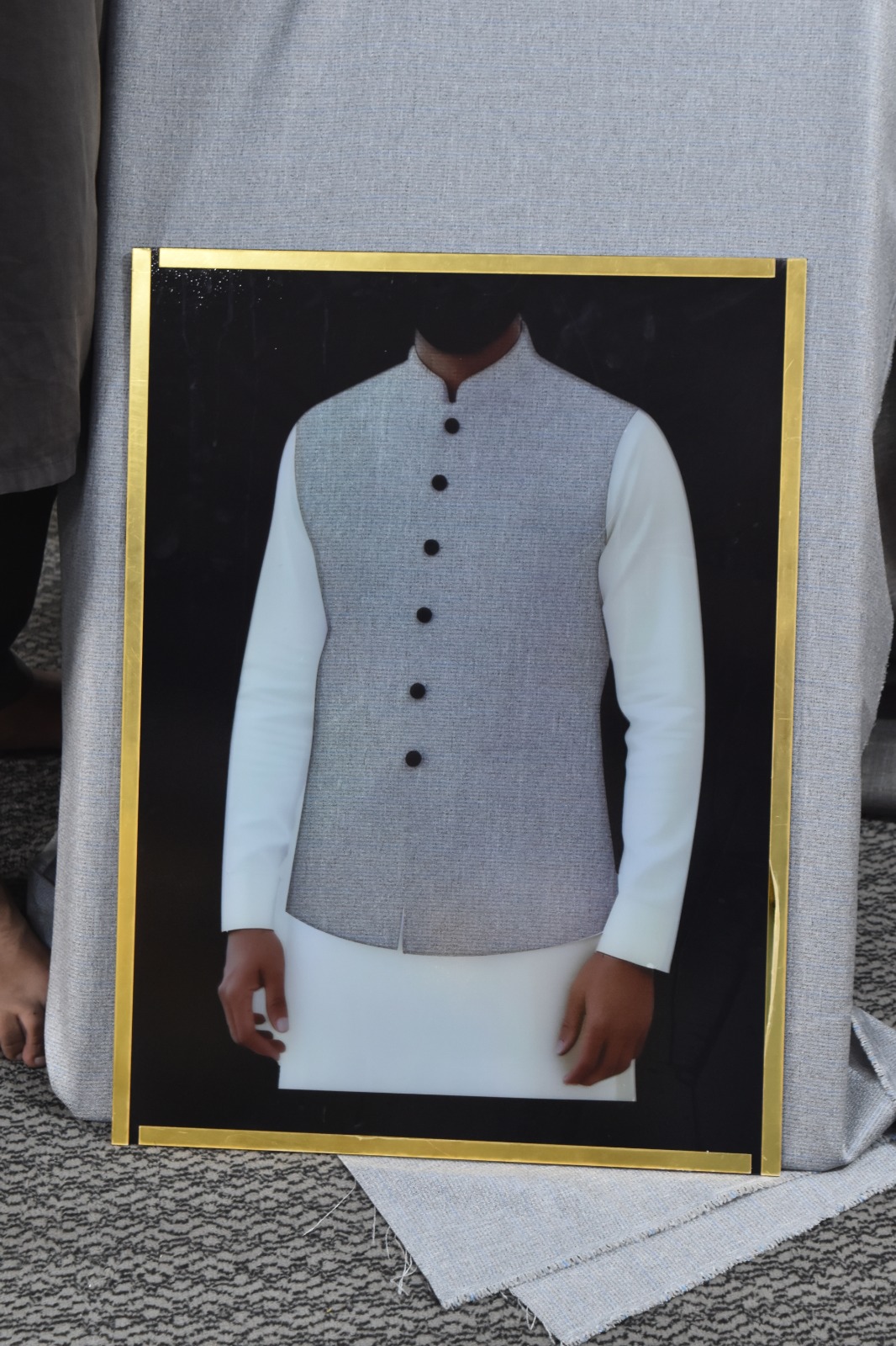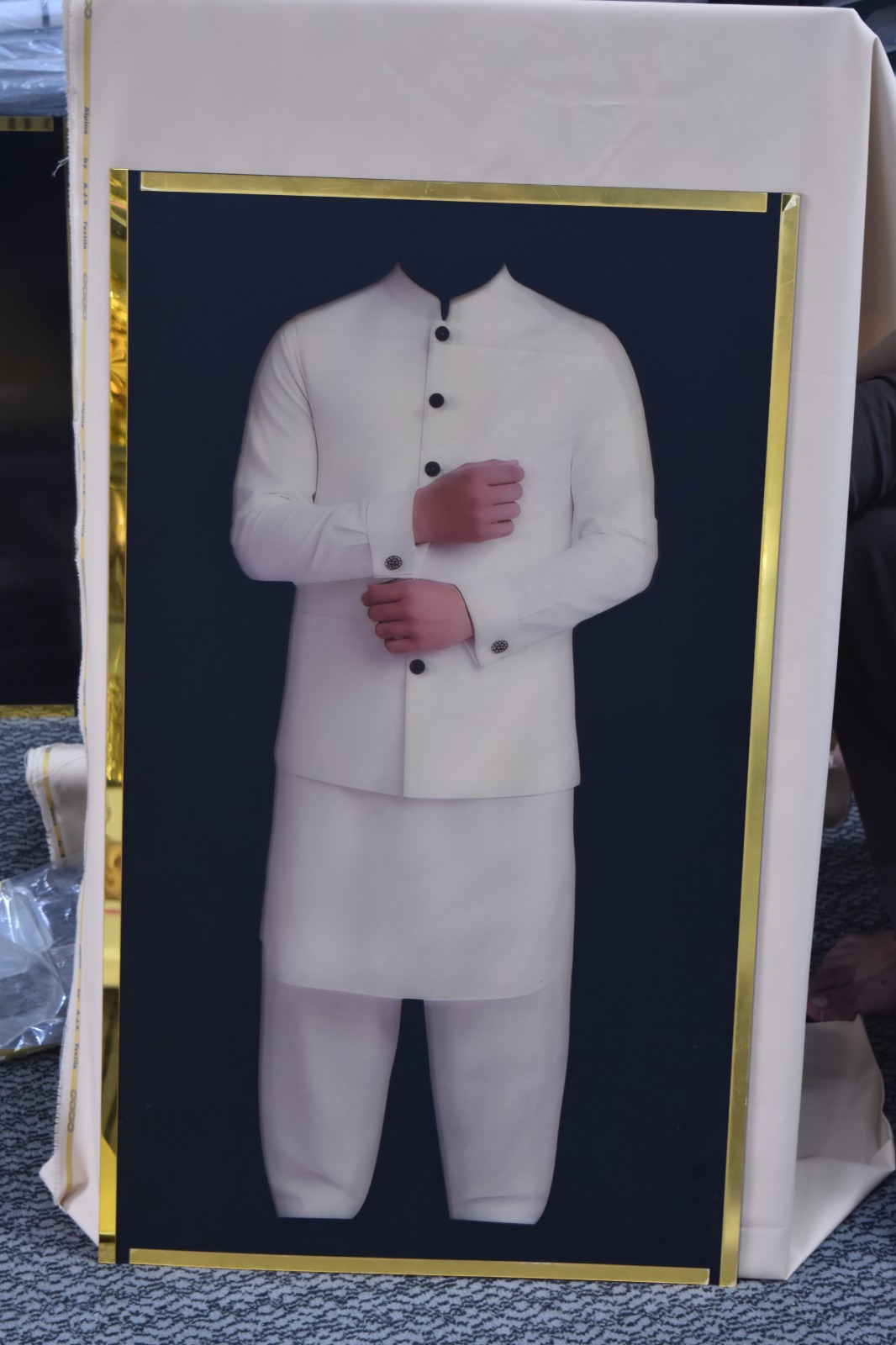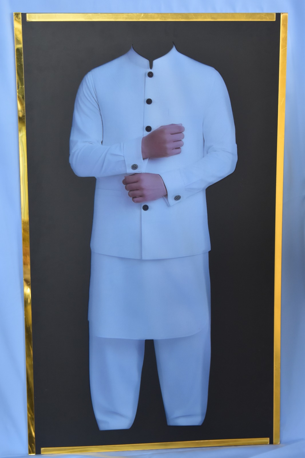 Present your suiting fabrics with sophistication using the Waistcoat Fabric Display Frame. This 3D frame transforms any fabric into a realistic waistcoat display, helping customers visualize finished designs instantly.